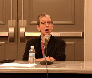 ![]() We walked about getting a "lay of the land" and strolled through the dealer's room (I won't tell you how much someone wanted for a 1960s Man from U.N.C.L.E. lunchbox!) and peeked into the video room where they were just starting Search (which reminded me that I had never bought the series). We did see Lana Wood (sister of the late Natalie Wood who played Plenty O'Toole in a James Bond film) getting ready for her panel, but decided to go for lunch before seeing some panels. We ended up having lunch in the hotel restaurant—they had specials for Spycon attendees—with Louis Robinson, ending up talking about crazy politics/politicians and freedom of speech. Next we went to a panel about forgotten James Bonds, especially Barry Nelson and David Niven...at least Bond fanatics remember George Lazenby. Following was the panel that Louis was doing: comparing the spy novels of Ian Fleming to those of John LeCarre. Certainly James Bond and George Smiley are poles apart! Sadly we had to leave before Louis' other panel about the ENIGMA machine and Bletchley Park as well as a panel about other spies in media, since we really wanted to go to Ken Spivey's birthday party. Alice and Ken came to visit James in the hospital and stayed most of the afternoon, so we wanted to return the kindness.